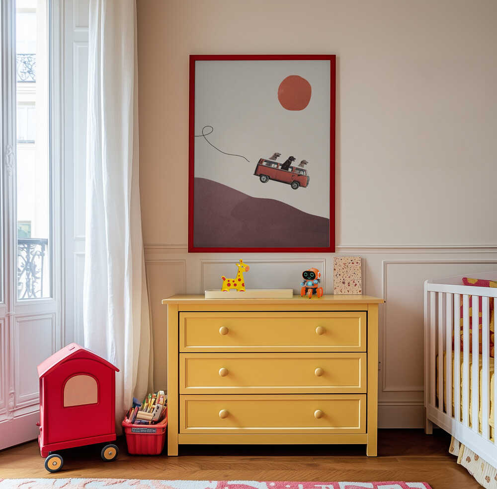Gi innredningen din et lekent og varmt preg med denne sjarmerende veggkunsten i myke beige og jordnære terrakottatoner. Den minimalistiske komposisjonen og balanserte fargepaletten skaper en rolig atmosfære uten å dominere rommet. Designet for å føles tidløs, men leken, passer den perfekt over en sprinkelseng, et lesekrok eller et skrivebord. Et vakkert valg for barnerom, lekeområder og moderne familiehjem – passer utmerket sammen med skandinavisk-inspirert interiør og gallerivegger. Trykket på førsteklasses museumskvalitetspapir med matt finish som bevarer hver detalj og farge i mange år.